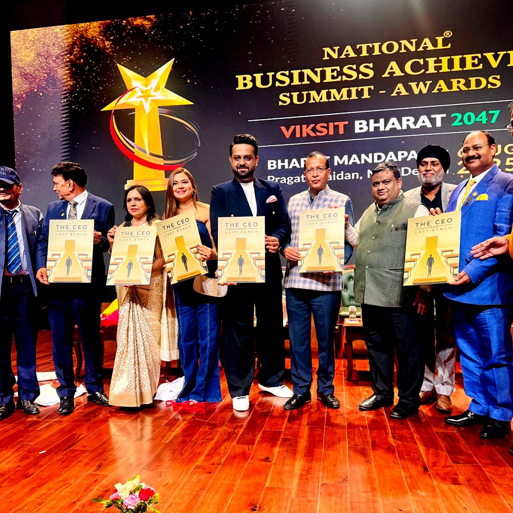 Book Launch – The CEO from the Back Bench, at the Business Achiever Award Summit 2025, sharing insights from his entrepreneurial journey.